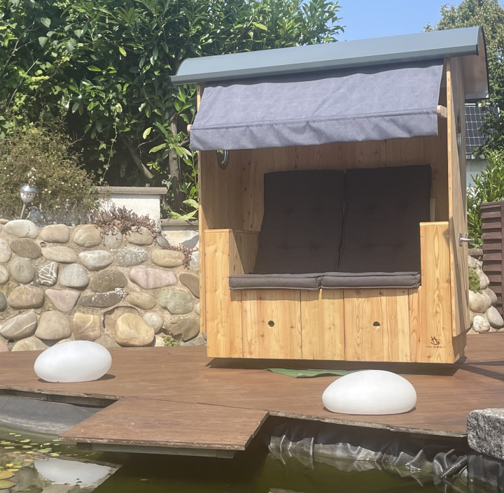Unsere individuellen Hütten-Strandkörbe sind die perfekte Ergänzung für den Garten und bieten eine wohltuende Alternative zu anderen Designs. Die hervorragende Verarbeitung und die innovative Drehfunktion ermöglichen es, den Strandkorb in die gewünschte Position zu bringen und die Sonne zu genießen.